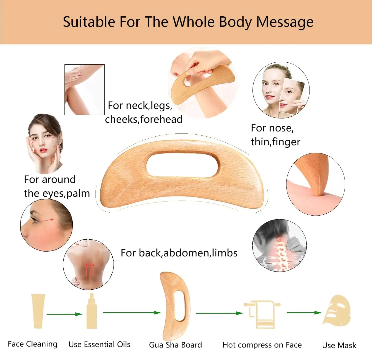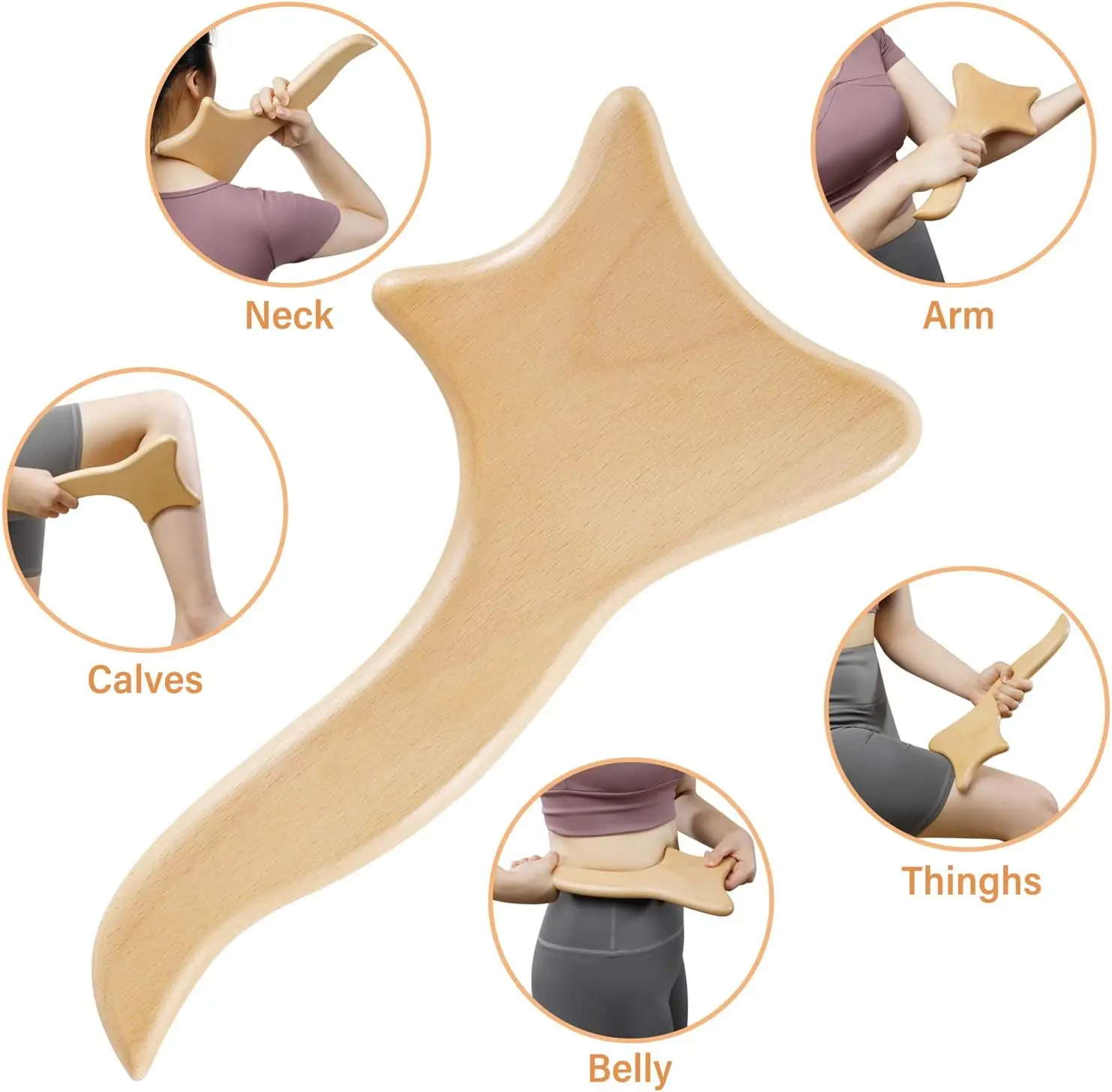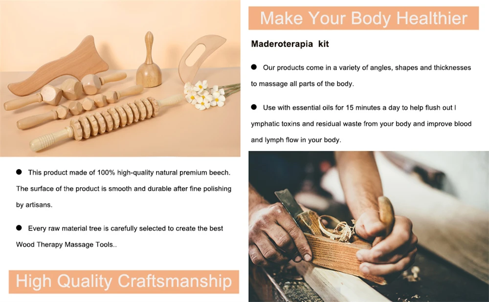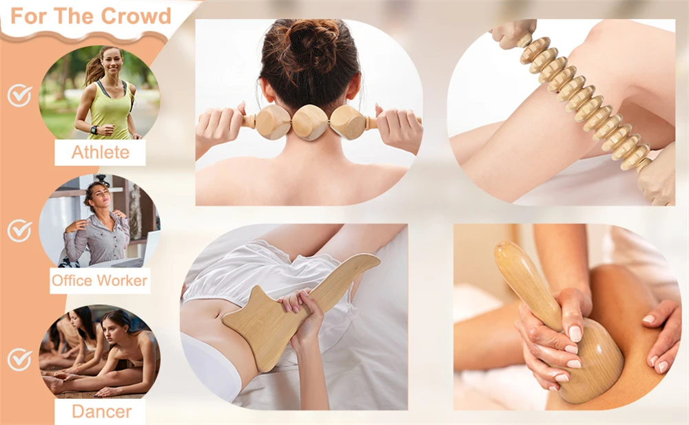 Made of 100% high-quality natural premium beech. After the craftsmen's fine polishing process, the wood massage Tools' surface is smooth, burr-free and will not scratch your skin. The edges are humanized designed in a variety of angles, shapes and thicknesses for massage on all parts of the body.